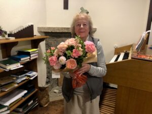 A huge thank you to Chris Cleverdon for organising a successful “Songs of Praise” at St Boniface Church last evening. £103 was raised for church funds. Here is Chris receiving a bouquet of flowers with thanks for all she does to make our services so joyful.